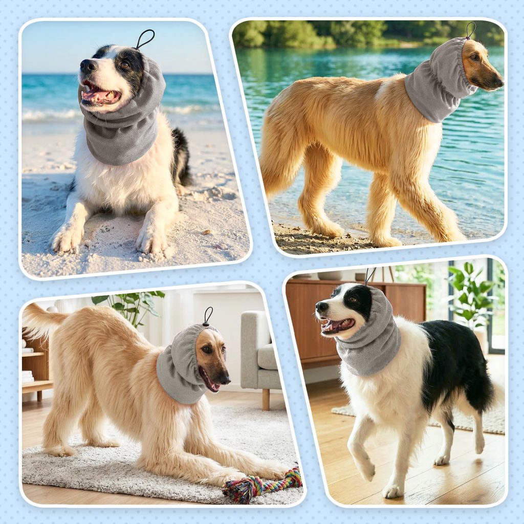Featuring a built-in elastic drawstring, this cooling headgear offers a customizable fit that works for a wide range of dog sizes and breeds, from medium-sized retrievers to large golden retrievers and other long-haired breeds. The elastic band ensures a snug, secure fit that won’t slip off during play or walks, while still leaving enough room for your dog to breathe and move comfortably.