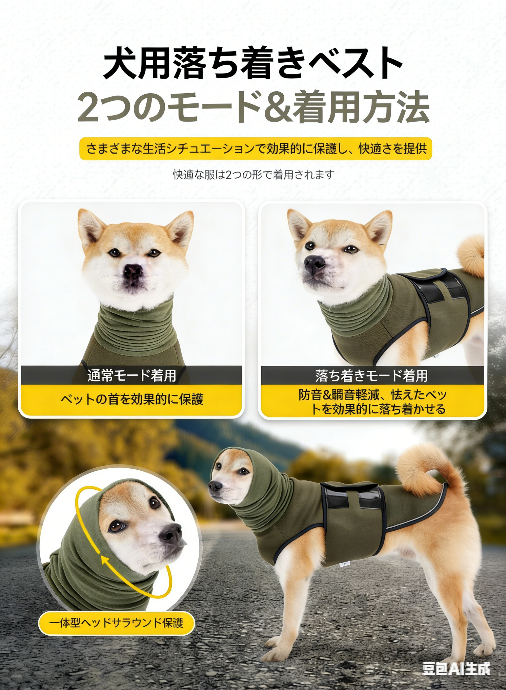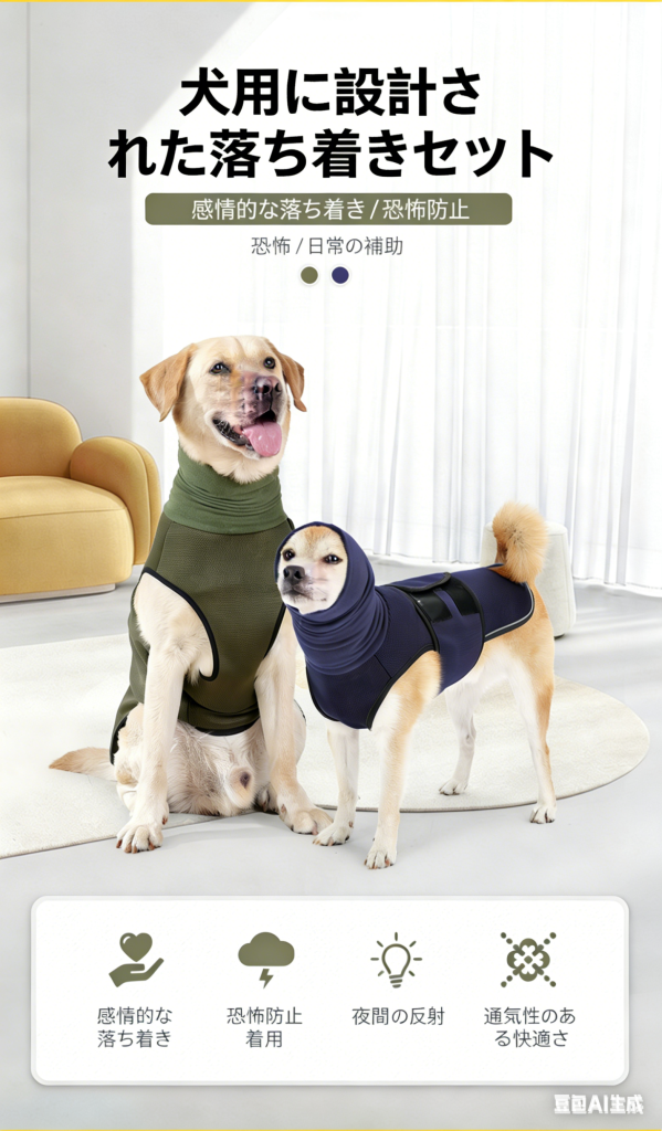 愛犬の不安やストレスを優しく包み込む犬用安定ベスト。雷・花火・留守番時の恐怖や緊張を緩和し、愛犬を穏やかな状態に導きます。通気性の良いメッシュ素材で長時間着用も快適、調節可能なベルクロでどんな体型にもフィット。夜間のお散歩に安心な反射テープ付き。