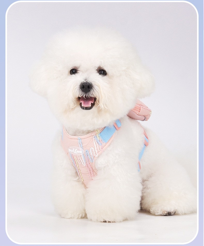 Cute Macaron Dog Harness with Storage Bag, No Pull Adjustable Puppy Harness for Small Breeds, Lightweight Breathable Pet Harness for Daily Walking