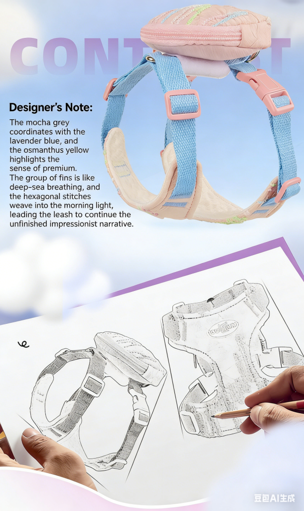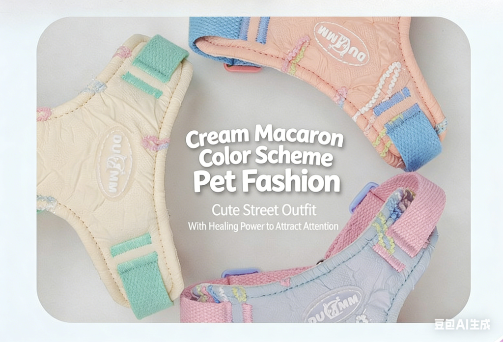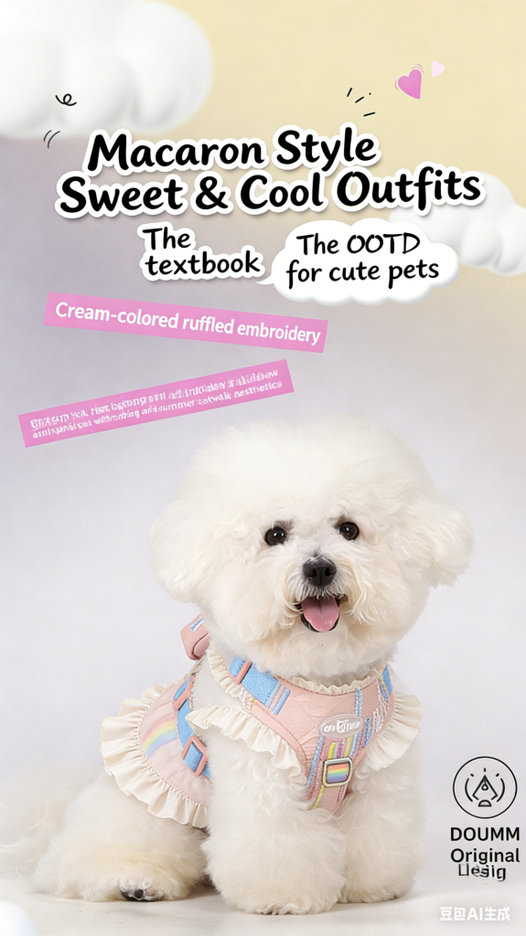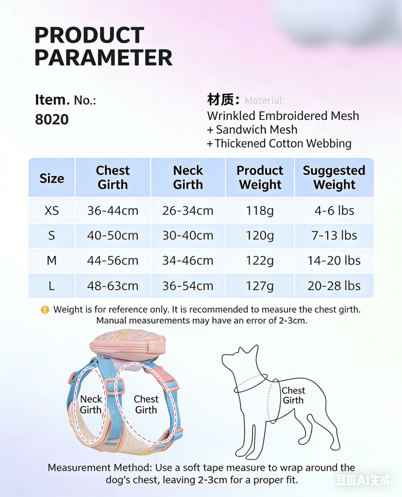 Cute Macaron Dog Harness with Storage Bag, No Pull Adjustable Puppy Harness for Small Breeds, Lightweight Breathable Pet Harness for Daily Walking