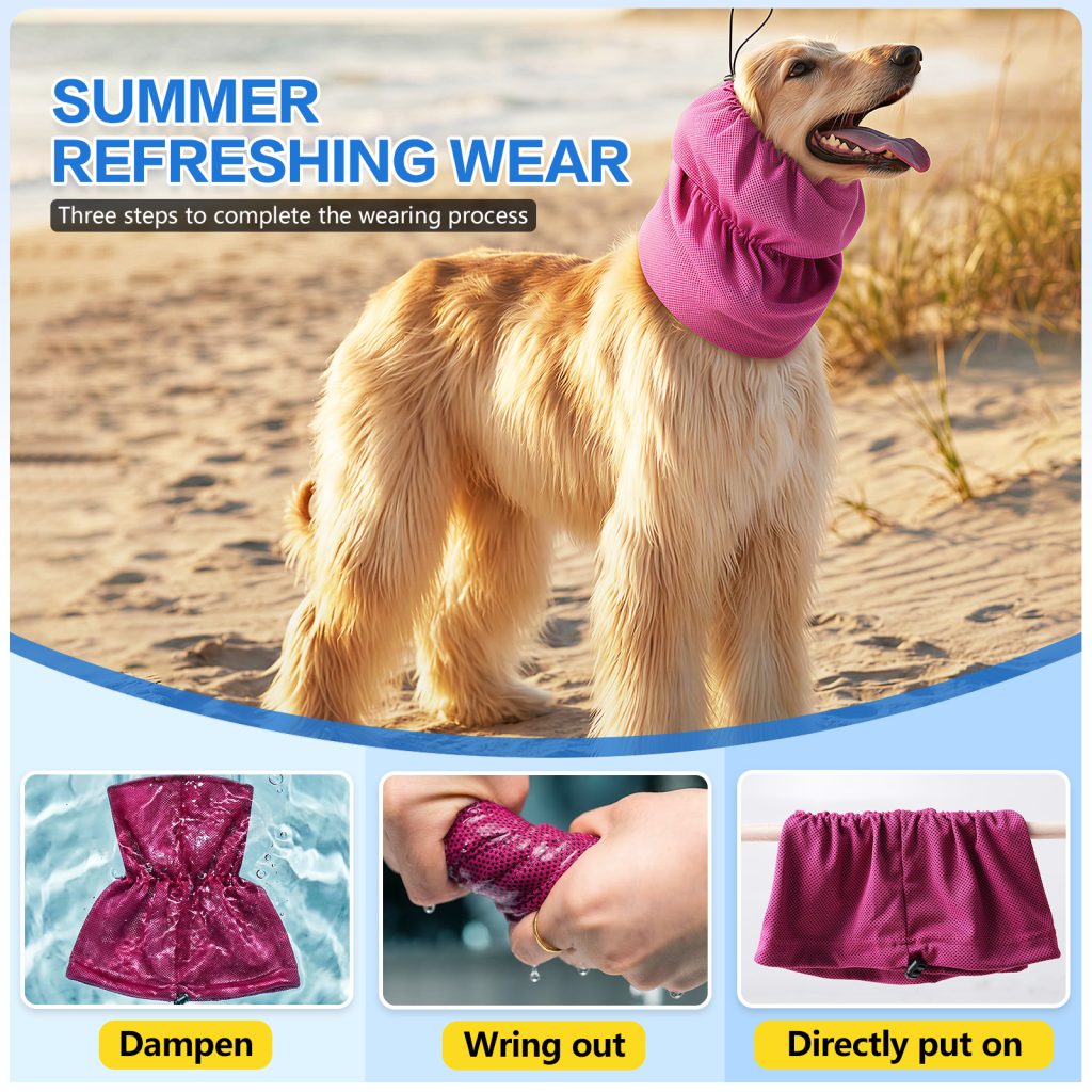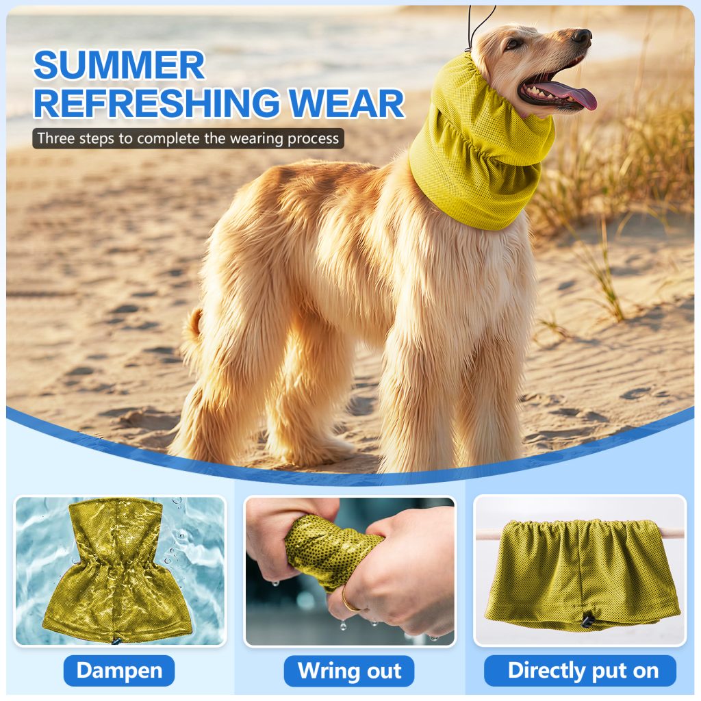 This multi-functional cooling dog headgear is specially designed for long-haired dogs, providing instant cooling relief in hot summer. Featuring an adjustable strap design, it fits most dog sizes comfortably and securely. Made with premium cooling fabric, it helps lower body temperature and keeps your pet cool and refreshed all day long, perfect for outdoor walks, travel and daily use.